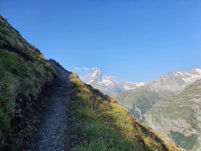 Einkehrmöglichkeit findet man bei der Tufternalp oder eben bei der Bergstation am Unterrothorn. Das grandiose Fotomotiv des Matterhorns natürlich mit dabei.