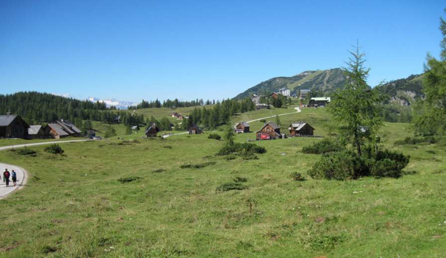 Der oberen Straße folgt man bis zur nächsten Kehre, wo man geradeaus weiter auf einen Almweg trifft, der nach Niederblas, einer ehemaligen Alm, führt. Über einen Steig durch die Wald erreicht man einen flachen Sattel. Man genießt einen schönen Blick auf den Steirersee, bevor es links abwärts zu den Steirerseehütten geht. In gleicher Richtung weiter, aber wieder etwas ansteigend, erreicht man die Tauplitzalm. Linker Hand geht es zum Linzer-Taublitz-Haus, gerade aus gelang man ins Zentrum mit der Kirche, der Bergstation des Sessesliftes und einigen Hotels.
