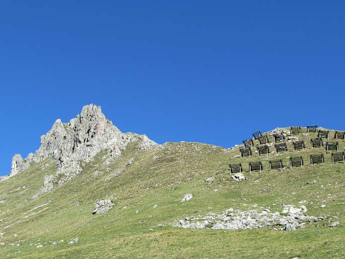 Der erste Abschnitt führt über eine Alpstrasse von Wolfgang zur Parsennhütte. Im unteren Teil ist sie noch flach und verläuft durch Latschen, später steilt sie sehr auf und windet sich entlang des Stützbachs immer weiter in die Höhe. Hier sind die Hänge noch grün.