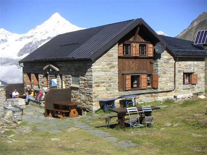 Man hält sich nun zuerst Richtung Rotbach, zweigt dann beim Wegweiser rechts auf dem Almweg ab und folgt nach 4 Serpentinen der ansteigenden Hangquerung auf den Rinderberg. Bei 2.552 m hält man sich links und erreicht nach einem leichten schrägen Anstieg die aussichtsreich gelegene SAC Täschhütte (3.701 m), welche aus einem urigen alten und einem modernen Haus besteht.