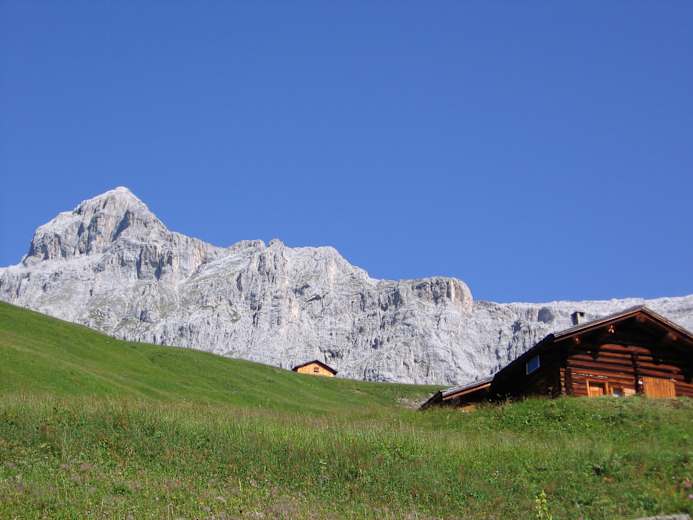 Die Sulzfluh (2.818 m) ist besonders von der schweizer Südseite eine dominante Felsgestalt im zentralen Rätikon im österreichisch-schweizer Grenzgebiet. Der Kalk leuchtet schon hell vom Prättigau entgegen.