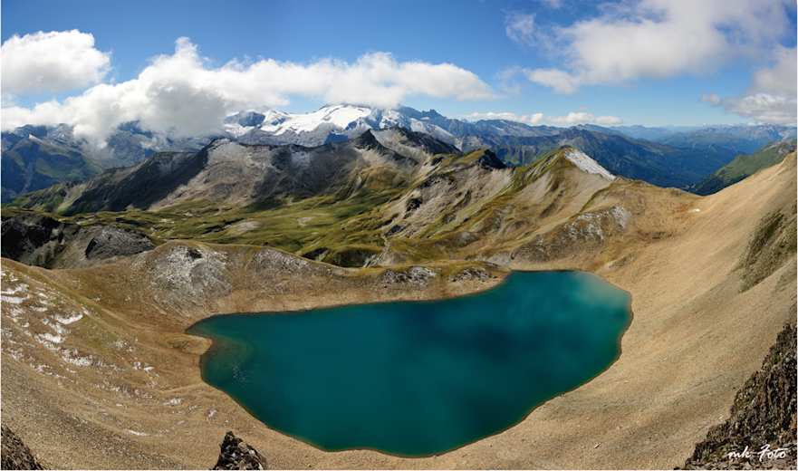 Vom Joch geht es ein Stück abwärts und in der Mulde gelangt man an eine Weggabelung. Hier hält man sich links weiter in Richtung Südwesten. Es geht noch einmal ziemlich aufwärts, bevor man unterhalb des Geiers schließlich zum 2.700 m hoch gelegenen Junssee gelangt, der wunderschön eingebettet in der alpinen Landschaft liegt.