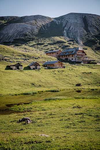 Von hier kann man zu schroffen Gipfeln aufsteigen, den Dolomiten Höhenweg fortsetzten oder gemütlich eine Almenwanderung hoch über Pederü machen.