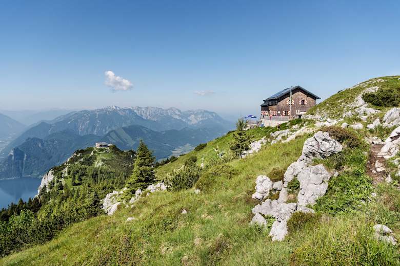 Die aussichtsreiche Gmundner Hütte (1.666 m) liegt am Traunstein in den Oberösterreichischen Voralpen in der Region Traunsee-Salzkammergut.