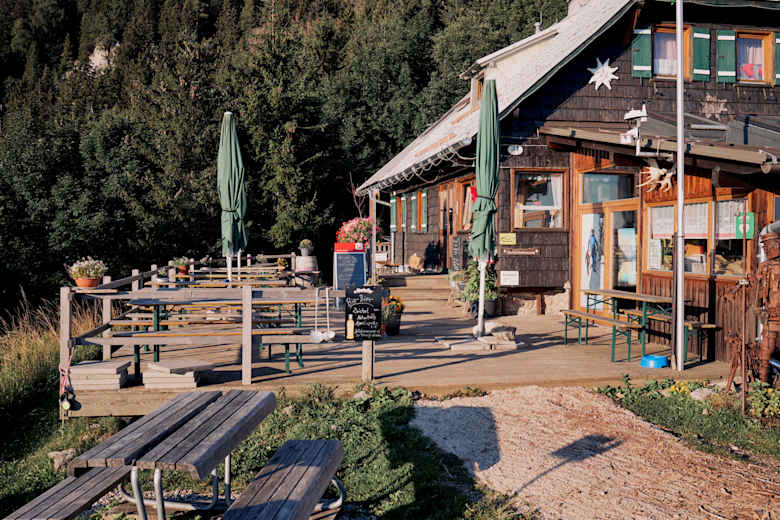 Gemütliche Terrasse der EdelweißhütteFoto: Philipp Schönauer / ASA 12 / Red Bull Media House Publishing