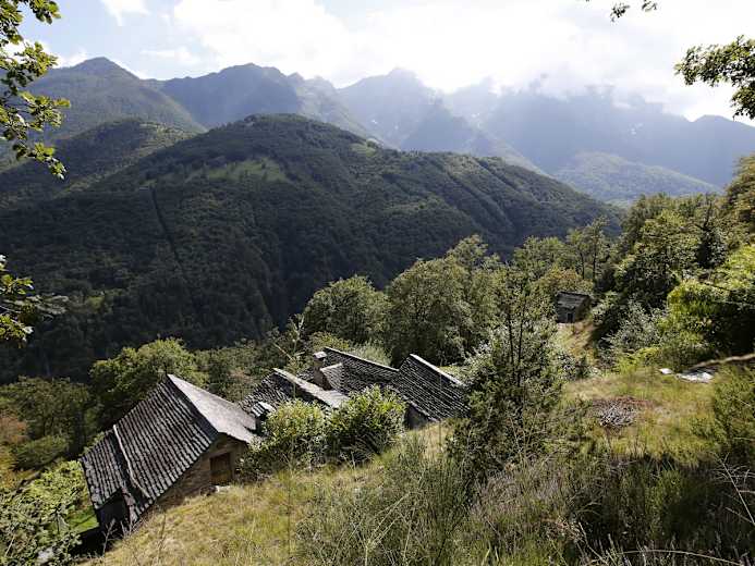 Weiter gehts nach Lionza zur Brücke Rii di Mulitt (586 m) nach Verdasio, wo schicke Patrizierhäuser thornien. Der Höhenweg verläuft nun Richtung Slögna und Calezzo direkt nach Intragna (376 m).