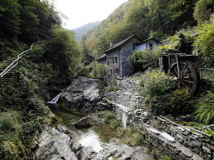 Vom Bahnhof der Centovalli-Bahn in Cameda führt der Weg zuerst nach oben neben der Kirche vorbei nach Borgone (710 m). Hier gilt es, den spannenden Mühlenpark zu besichtigen, der einen Waschtrog, Reste einer Hammerschmiede und die Ruinen einiger Brotbacköfen aus dem 19. Jahrhundert beinhaltet.