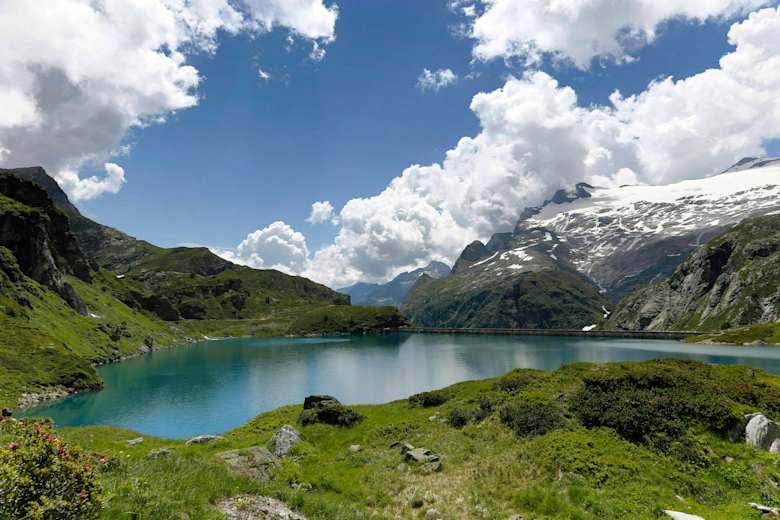 Festhalten! Die 15-minütige Fahrt mit der Schwebebahn von San Carlo nach Robièi bringt einen zum Fusse des Basodino-Gletschers, der sich bis zu 3.273 m auftürmt. Gleich bei der Bergstation (1.893 m) beginnt diese Rundwanderung und führt auf der linken Uferseite um den Stausee Robièi. Schmale Trampelpfade winden sich dem Ufer entlang und geben immer wieder einen Blick auf den glitzernden Gletscher frei und auch umliegende Stauseen kommen plötzlich zum Vorschein.