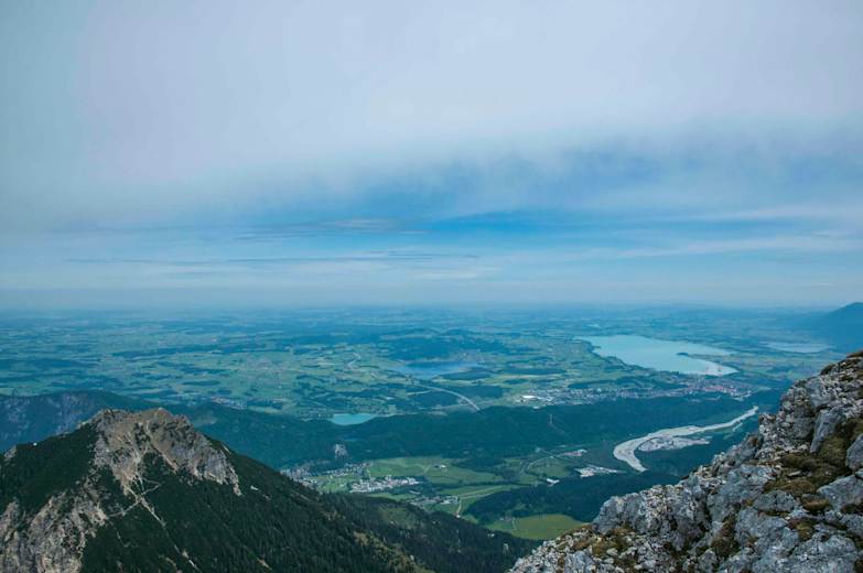 on der Bergstation der Gondelbahn am Füssener Jöchle wandert man an der kecken Läuferspitze vorbei und steigt kurz hinauf zum Reintaler Jöchle. Hier folgt man den Wegweisern zur Otto-Mayr-Hütte (1.530 m), die hinüber in Richtung Vilser Scharte leiten. Der Weg quert die Hänge des Hahnenkopfes. Die folgende Abzweigung zur Großen Schlicke ignoriert man und steigt weiter hinunter bis zu einem Denkmal der Sektion Augsburg. Man kommt zur Füssener Hütte (1.550 m) und sieht kurz danach links, etwas oberhalb des Weges die Willi-Merkl-Gedächtnis-Hütte (1.550 m).