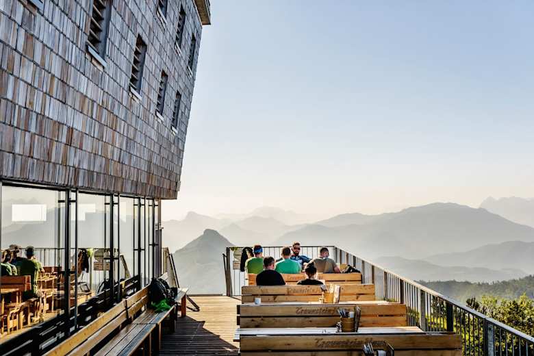 Der Traunstein ist der beherrschende Gipfel oberhalb des Traunsees bei Gmunden in den Oberösterreicher Voralpen. Das Traunsteinhaus (1.580 m) der Naturfreunde liegt in der Nähe des Traunkirchner Kogels, etwas westlich des Hauptgipfels. Die Hütte wurde vor ein paar Jahren renoviert und ist entsprechend gemütlich. Kürzester Anstieg zur Hütte ist der mit Drahtseilen und Klammern versicherte Naturfreundesteig.