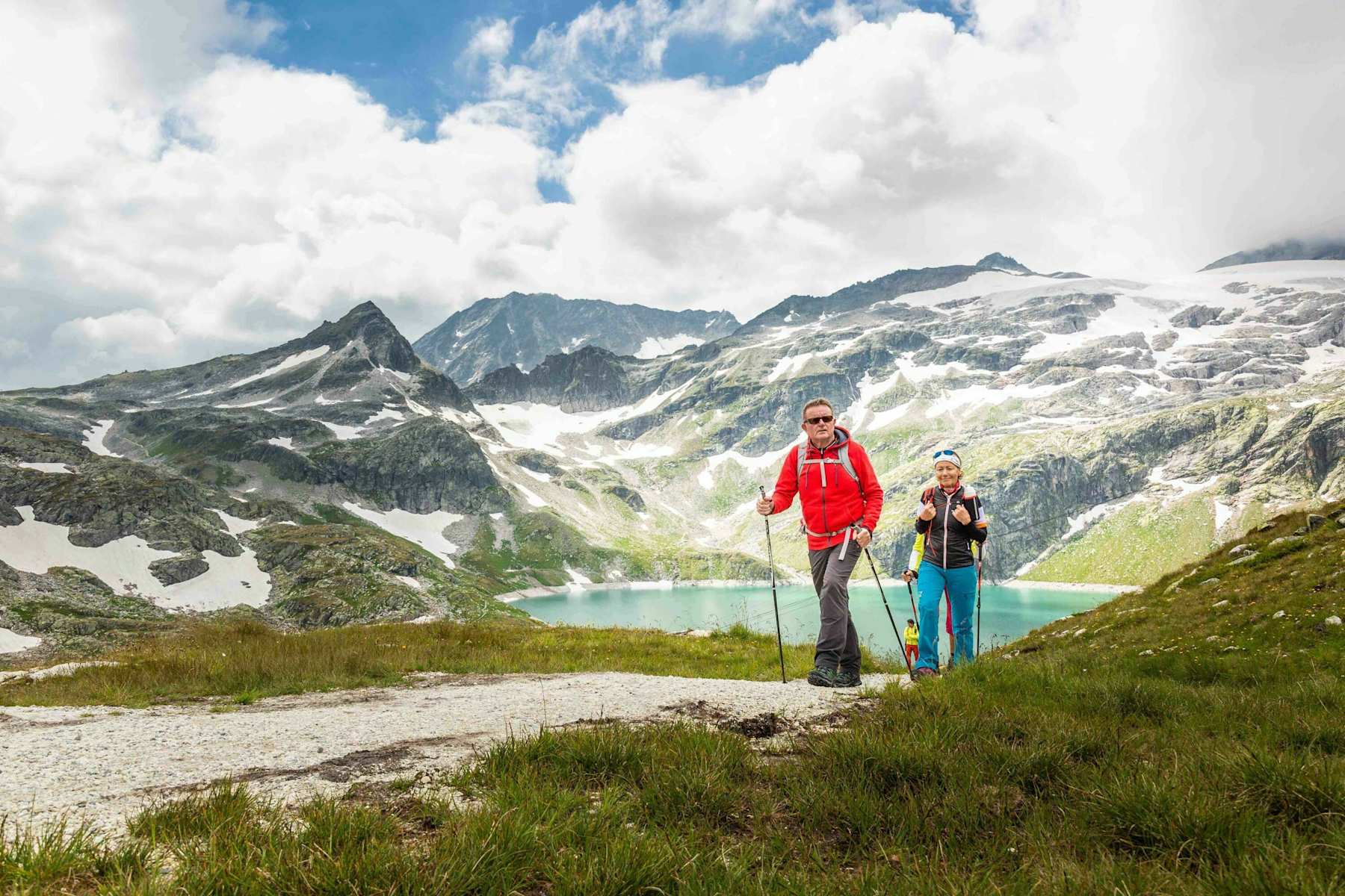 Im Nationalpark Hohe Tauern nahe des Großglockners führt die Wanderung vom Enzingerboden am Grünsee vorbei zum Berghotel Rudolfshütte (2.315 m). Das gemütliche Familienhotel liegt direkt am Weißsee und bietet einen fantastischen Ausblick auf den gleichnamigen Gletscher und die umliegenden Gipfel und die umliegenden Gipfel der Glocknergruppe.