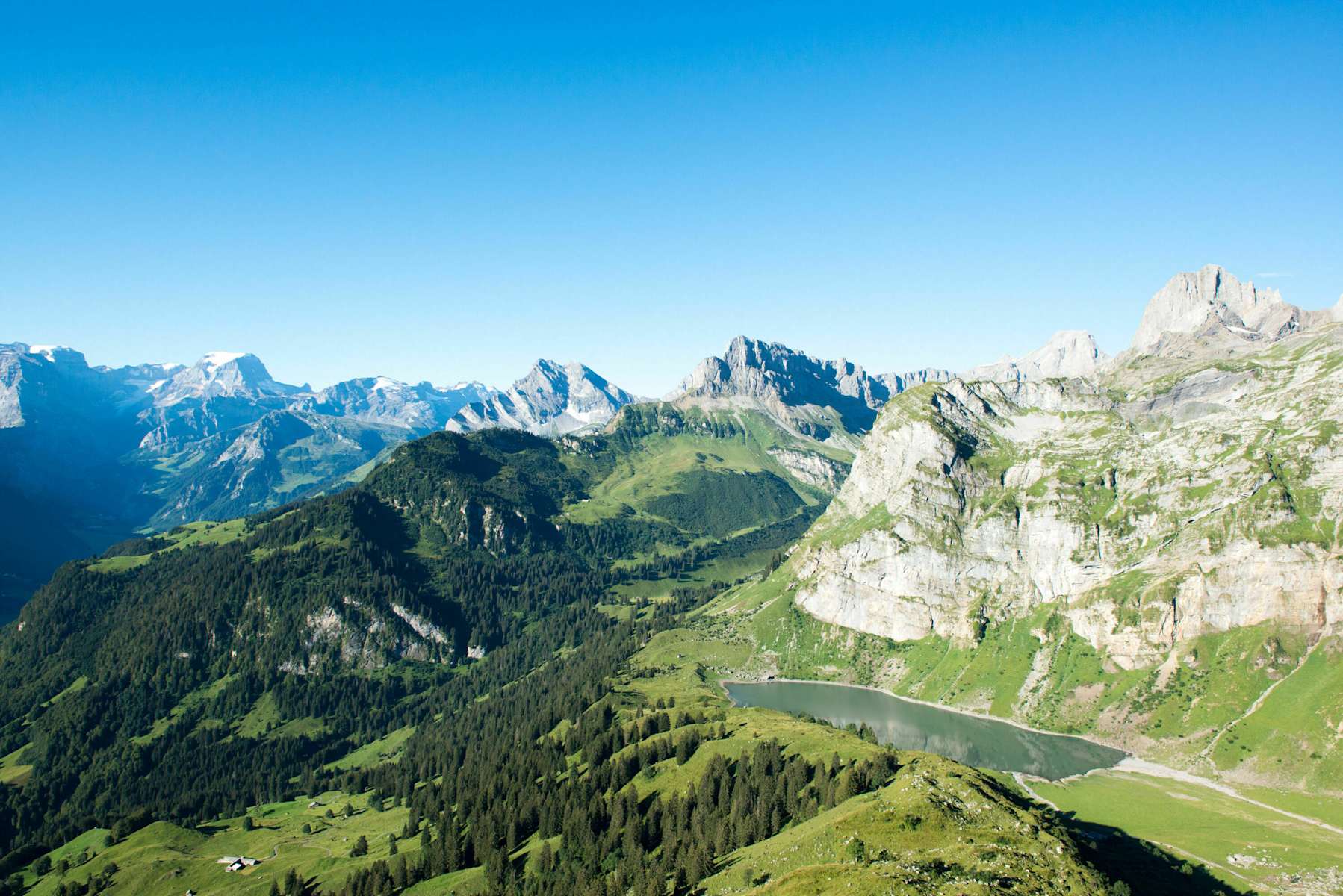 Zwei Bahnen sowie ein idyllischer Bergsee, der zum Baden lädt: Diese aussichtsreiche Wanderung zum Oberblegisee (1.421 m) oberhalb der Sonnenterrasse Braunwalds im Kanton Glarus ist besonders für Familien und Genusswanderer geeignet.