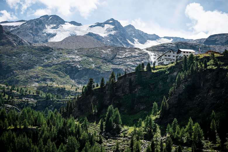 Die Zufallhütte auf 2.265 m steht in wunderschöner Aussichtslage im Ortler-Massiv in Südtirol. Der Zustieg vom Martelltal vom Ende der Landesstraße ist einfach, recht kurz und auch für Kinder durchaus machbar.