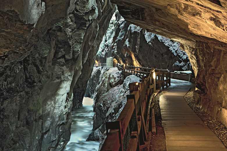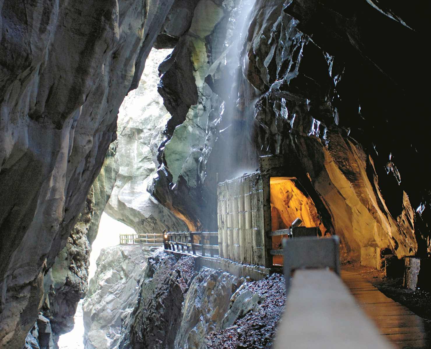 Im sogenannten Badtobel hat sich das warne Thermalwasser der Tamina bereits tief in den Felsen gegraben. Beim Schwatenfall wird es etwas ruhiger. Gleich darauf wird es aber richtig eng. Von beiden Seiten drängen die Felswände aneinander, kaum ein Sonnenstrahl fällt in die Schlucht.