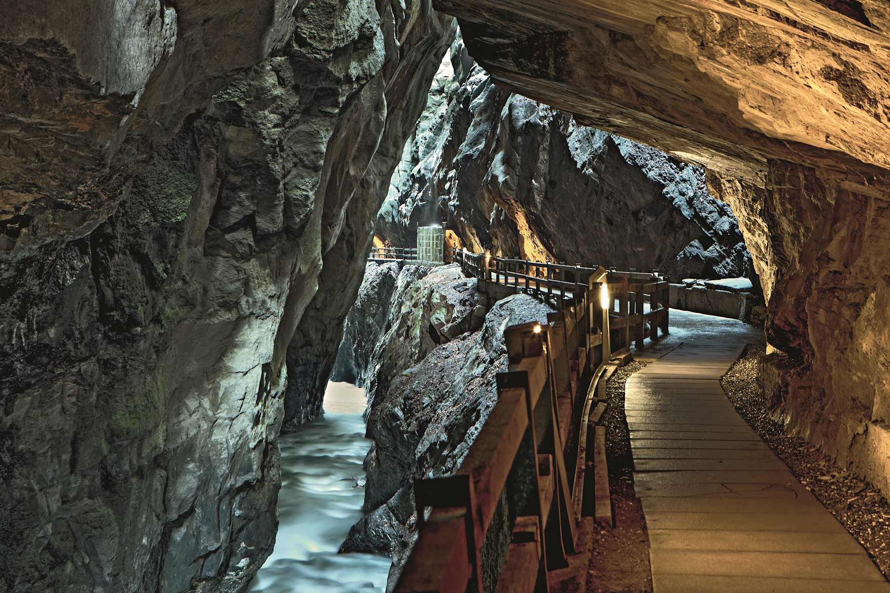 Nur wenige Meter vom Alten Bad Pfäfers entfernt befindet sich der Eingang zur sehenswerten Quellgrotte. Der Weg führt 450 Meter ins Felsinnere bis zur Grotte, wo das Quellwasser heiss aus dem Felsen sprudelt und den Ursprung für das älteste barocke Thermalbad der Schweiz liefert. Der Eintritt kostet CHF 5.-.