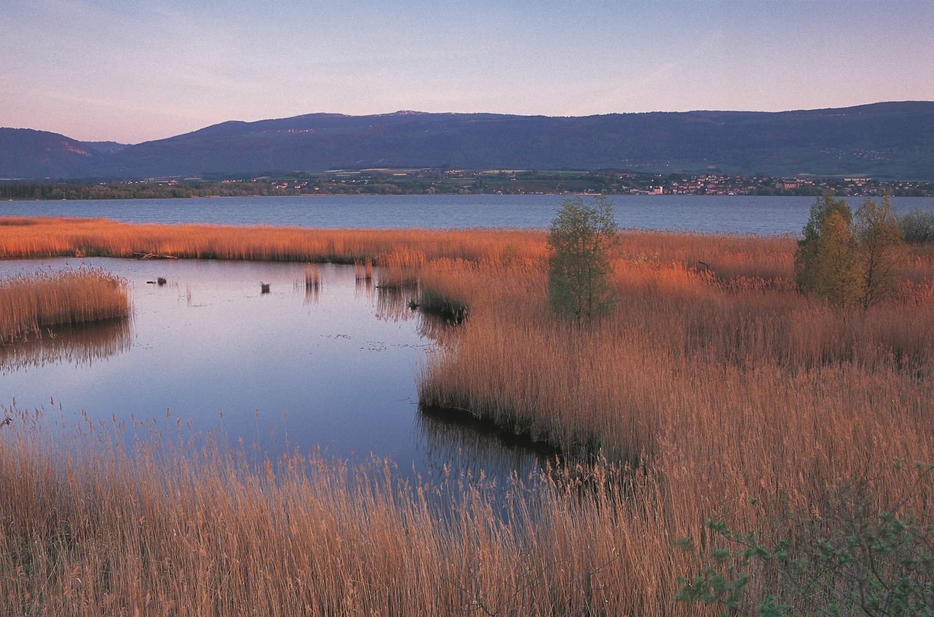 Die Route leitet nun durch den feuchten Uferbereich am Südende des Neuenburgersees. Der breite Schilfgürtel bietet zahlreichen Wasservögeln perfekte Bedingungen. Beim Ref. de l’Escarhille geht es kurz bergauf.