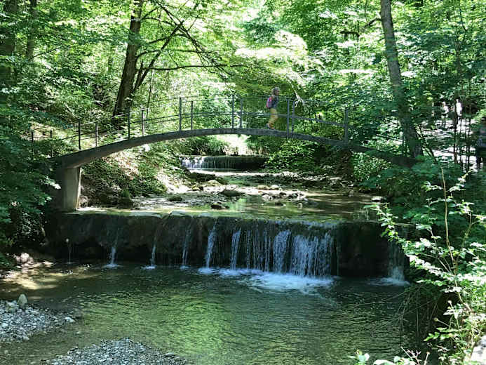 Vom Bahnhof Küsnacht her überquert man bereits erstmals den Dorfbach, passiert das Ortsmuseum und hält sich Richtung Mülirain. Nun ist man im Tobel angekommen und sieht schon die ersten der vielen Staustufen, die einen in der ersten Hälfte der Wanderungen begleiten.