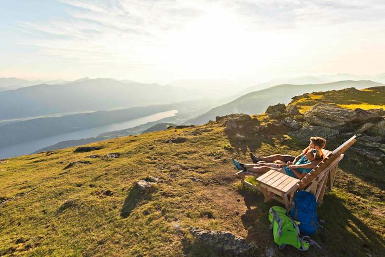 Eine Bank befindet sich in unmittelbarer Nähe zur Millstätter Hütte. Man kann sogar einen Picknickrucksack beim Millstätter See Tourismus für die Wanderung am Weg der Liebe bestellen.