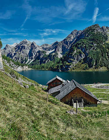 Imposant ist auch der Blick hinauf auf das mächtige Persailhorn, das man über zwei Klettersteige erklimmen kann. Über Mitterhorn und Breithorn gelangt man dann weiter zum Riemannhaus. Oder man wählt den Weg über die Weißbachscharte zum Ingolstädter Haus oder eben auch zum Riemanhaus. In Summe gibt es viele Möglichkeiten, die sich ab der Hütte auftun.