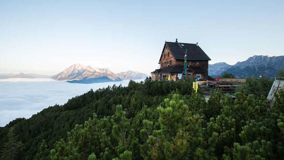 Die Peter-Wiechentalher-Hütte steht auf einem wunderbaren Platz an der Südflanke des Steinernen Meeres am Kienalkopf auf 1.753 m. Auf diesem Anstieg hoch über Saalfelden sind rund 4 Kilometer und 854 Höhenmeter zu überwinden.