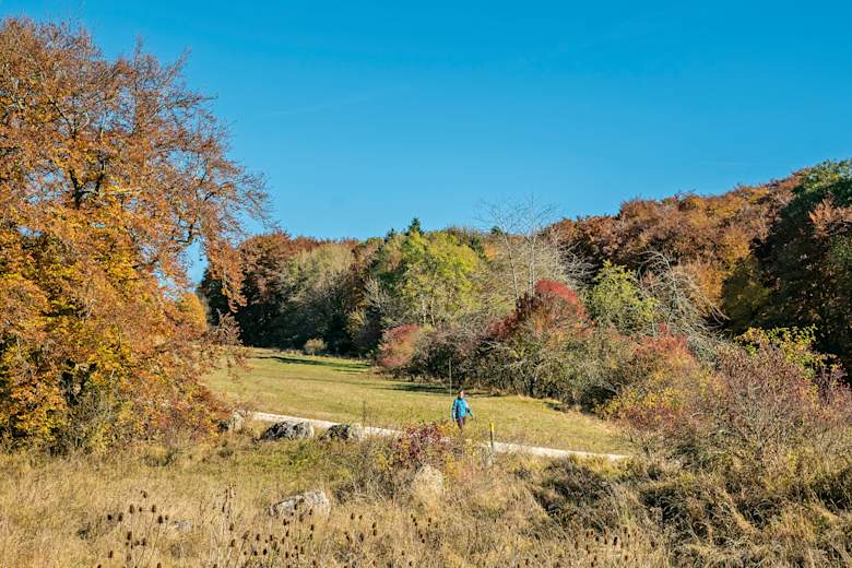 Die folgende Wanderung führt über breite Wege ins Böttental. Durch das Maientäle wandert man nach Auingen und zurück zum Truppenübungsplatz. Man trifft an einem sonnigen Samstag vor allem in den südlichen Ecken der Tour kaum andere Wanderer.