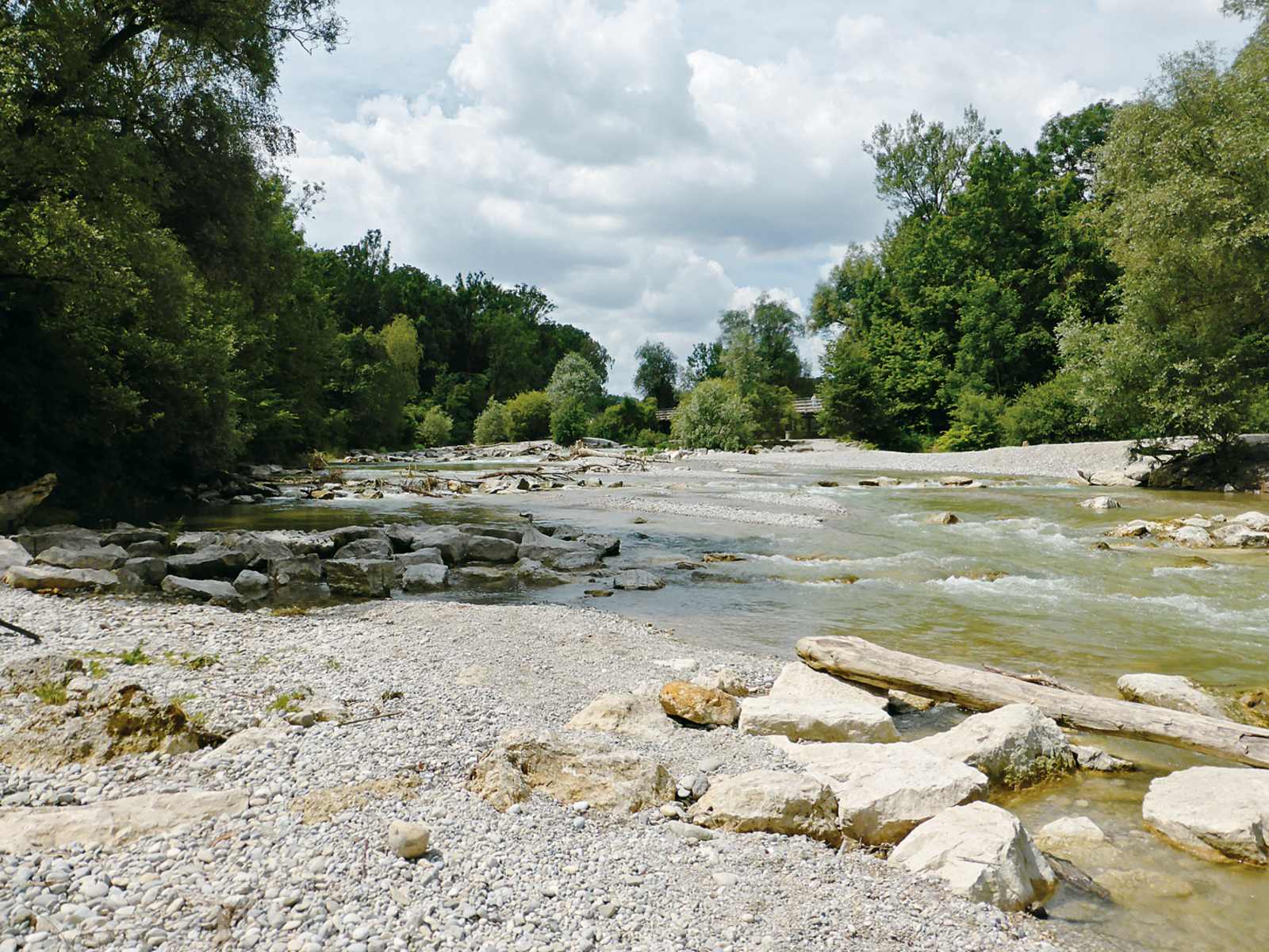 Durch viele Eingriffe bändigte und veränderte der Mensch den ehemaligen Wildfluss Isar. Die wichtigsten Gründe hierfür waren der Schutz der Bevölkerung vor Hochwasser, die Energiegewinnung und die Flößerei. Quer- und Längsbauwerke, führten zur Veränderung und damit zur Verarmung und Verinselung isartypischer Lebensgemeinschaften. So waren zum Beispiel im städtischen Bereich ehemals häufig vorkommende Fische wie Äsche und Nase fast verschwunden, weil sie nicht in ihre Laichgewässer aufsteigen und keine Unterstände mehr finden konnten. Aber auch die Menschen lebten eher am als mit dem Fluss. Dies war Anlass, in einem ersten Schritt ab dem Jahr 2000 die Isar unter dem Motto »Neues Leben für die Isar« in einem 8 km langen Abschnitt zwischen Großhesseloher Wehr und Deutschem Museum unter einem enormen Aufwand zu renaturieren. Dies sollte nicht nur dem Hochwasser- und Naturschutz zugutekommen, sondern auch den Freizeit- und Erholungswert verbessern. Die Kosten, die vom Freistaat Bayern und der Landeshauptstadt getragen wurden, lagen für die 11 Jahre dauernde Bauzeit bei 35 Millionen Euro. Es wurden u. a. das Flussbett aufgeweitet, die Ufer und Böschungen abgeflacht, Kiesinseln angelegt und Sohl- und Grundschwellen zu naturnahen Sohlrampen und aufgelösten Steinriegeln umgestaltet. Im letzten Bauabschnitt zwischen Wittelsbacher Brücke und Deutschem Museum wurden Verzweigungen des Gewässerlaufs mittels Inseln und Kiesbänken geschaffen. Heute hat die Isar wieder einen naturnahen Charakter, in dem sich auch das Flussbett verlagern kann. In Untersuchungen zur Fischfauna nach den Anforderungen der Europäischen Wasserrahmenrichtlinie (WRRL) verfehlte die renaturierte Strecke knapp den geforderten »guten ökologischen Zustand«, was daran lag, dass die Langdistanzwanderfische wie Huchen oder Nase nicht in ausreichender Zahl vorhanden waren. Der Grund dafür sind die noch vorhandenen Wanderhindernisse. Deshalb sollen weitere Umgestaltungsmaßnahmen an der Isar zwischen Loisachmündung im Süden und Oberföhring im Norden folgen. Im Fokus stehen hier die naturnahe Umgestaltung der Isar, die Herstellung der Fischdurchgängigkeit der Wehre und die Vernetzung mit den Zuläufen.