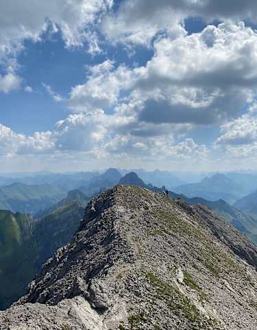 Vom Grat gibt es mehrere Abstiegsmöglichkeiten, so dass man bei Problemen mit Kondition, Schwierigkeiten oder Wetter ausweichen kann. Idealerweise schaut man sich die Möglichkeiten im Vorfeld auf der Karte gut an.