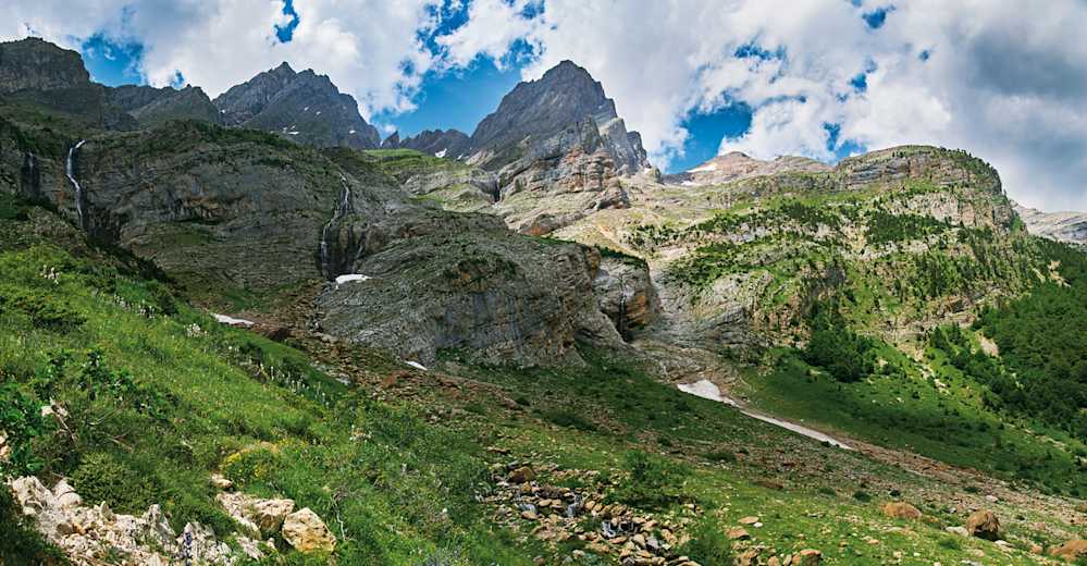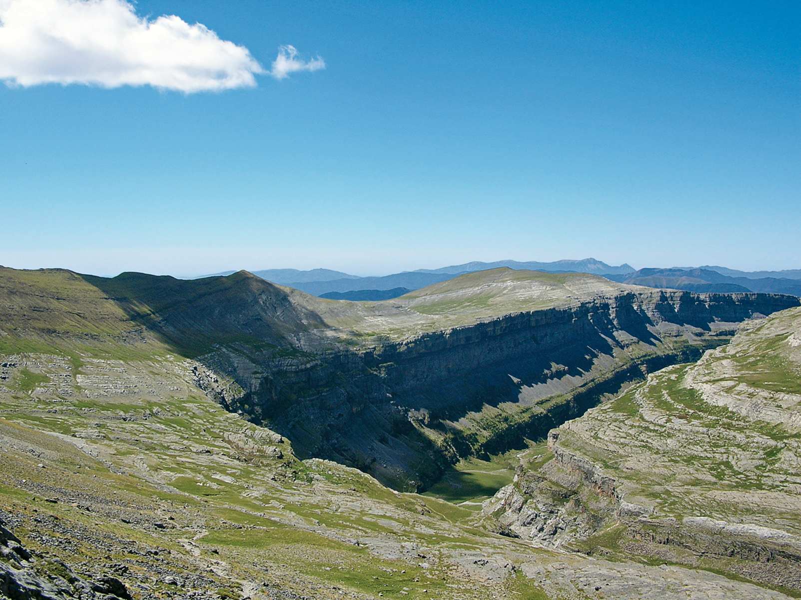 Der Monte Perdido ist der einzige Kalkberg der Zentralpyrenäen inmitten von Granitgipfeln und sogar höchstes Kalksteingebirge Europas: ein weites steinernes Amphitheater mit stufenförmigen Felsaufschwüngen, bizarr verformten und verbogenen Felsschichten. Dem elsässischen Baron Louis Ramond de Carbonnières wird die Erstbesteigung des 3.355 m hohen Gipfels am 10. August 1802 zugeschrieben. Das Erlebnis beeindruckte ihn so sehr, dass er als Vergleich den Mont Blanc, den König der Granitgebirge heranzog: Wer jenen gesehen habe, müsse auch den König der Kalkgebirge sehen! Auf der Nordseite des Monte Perdido findet sich einer der letzten Gletscher der Pyrenäen. Erst 1982 wurde der Ordesa-Nationalpark um das Massiv des Monte Perdido und das Escuaín-Tal auf eine Fläche von 15.608 ha erweitert und erhielt seinen heutigen Namen: Parque Nacional de Ordesa y Monte Perdido. Das Refugio de Góriz ist einer der klassischen Ausgangspunkte für den Aufstieg auf den Gipfel. Dieser ist aber nur unter optimalen Bedingungen empfehlenswert, bei Glätte oder Schnee ist der insgesamt recht anstrengende Weg sehr gefährlich. U. a. geht es durch einen extrem steilen, 35 Grad geneigten Geröllhang hinauf. Es wundert kaum, dass es am Monte Perdido immer wieder zu tödlichen Unfällen kommt, denn in den Sommermonaten ist es eine wahre Karawane, die sich den mythischen Berg hochzieht. Auf der Schutthalde unter dem Gipfel werden manche Steinlawinen ausgelöst, weil einer schneller als der andere sein will und mit Heldenambition, aber ohne Augenmaß nach oben gerast wird.