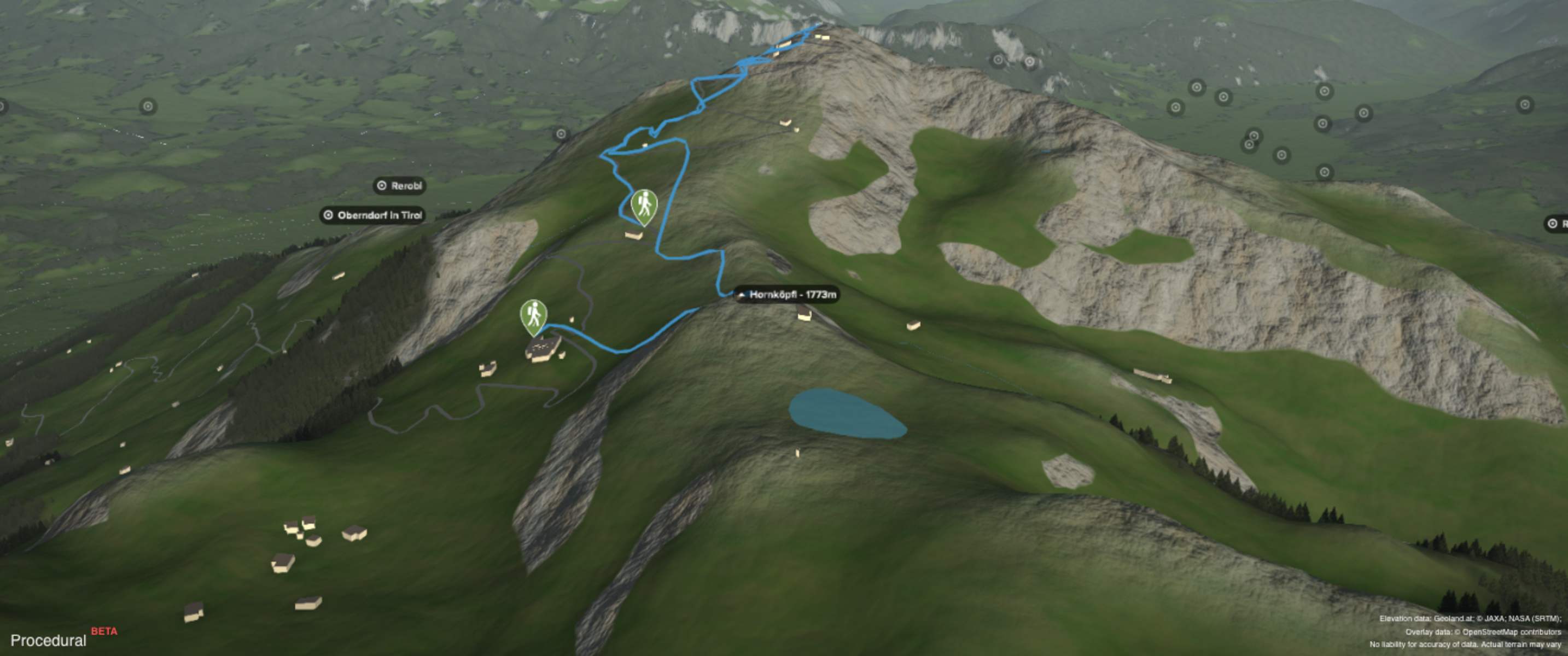 Hier hat man zwei Möglichkeiten. Erfahrene Bergsteigen klettern weglos ohne große technischen Herausforderungen (I-II) den Fels hoch bis zum Kitzbüheler Horn. Wanderer erreichen den Gipfel einfach über die Straße. Am Horn angekommen, genießt man einen 360 Grad Rundumblick. Der Wilde Kaiser, die Kitzbüheler Alpen und die Loferer und Leoganger Steinberge sind auf dieser Tour in Tirol zu bestaunen.