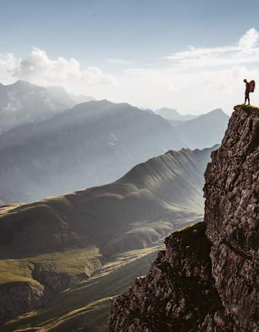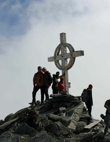 Wieder einige Meter retour zu einer Bank (1.885 m) und weiter über einen Weg Richtung St. Johann. Diesen verlässt man bald unter dem Gipfel auf der Westseite. Nun folgt eine technisch leichte Kletterei und man erreicht den höchsten Punkt auf 1.996 m. Hier steht auch die Schautafel und man genießt den 360 Grad Rundumblick.