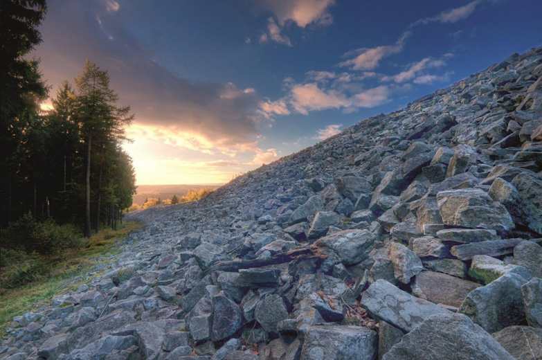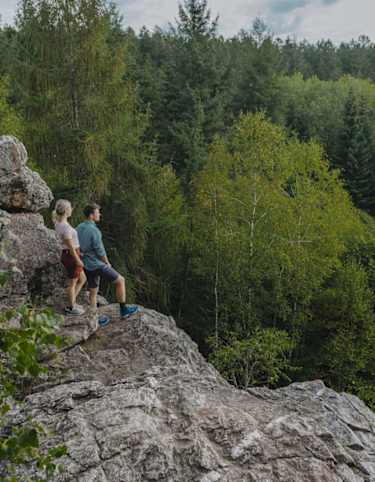Die Wanderung auf der 9. Etappe des Saar-Hunsrück-Steig beginnt in Nonnweiler und endet in Börfink / Einschieder Hof . Die Route startet mit einem anspruchsvollen Aufstieg über rund 200 Höhenmeter zur Talsperre Nonnweiler und weiter zur imposanten vorgeschichtlichen Befestigungsanlage Ringwall Otzenhausen. Anschließend verläuft der Weg über den Kamm der Dollberge durch stille Bergwälder, bevor der Abstieg ins idyllische Trauntal folgt. Dort öffnen sich weite Ausblicke. Es handelt sich um eine Tour mit mittlerer Schwierigkeit.
