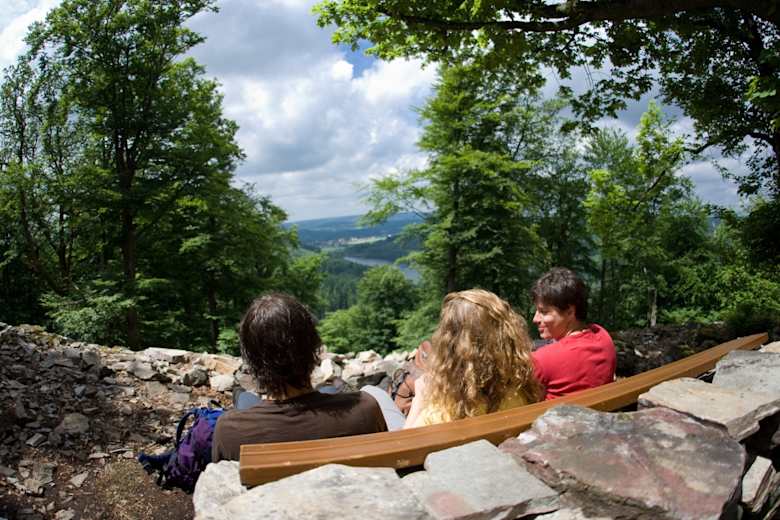 Am keltischen Ringwall lohnt es sich, einen Moment innezuhalten – Infotafeln und Aussichtspunkte machen die jahrtausendealte Befestigung lebendig und verbinden das Naturerlebnis eindrucksvoll mit Geschichte.