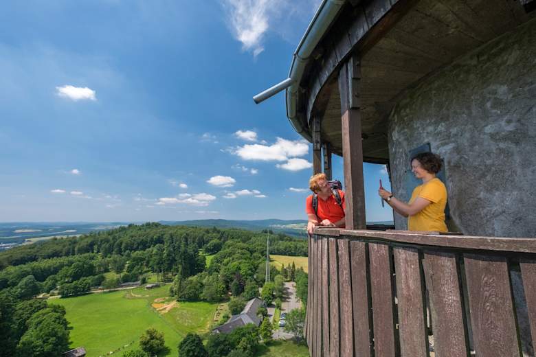 Die Wanderung auf der 12. Etappe des Saar‑Hunsrück‑Steig beginnt in Kempfeld und endet in Idar-Oberstein (Altstadt) in Rheinland-Pfalz. Der Weg startet mit Natur- und Kultur-Highlights wie der Burg Wildenburg samt Wildfreigehege, dem Wildenburger Kopf und der markanten Blockhalde der Mörschieder Burr im Nationalpark Hunsrück‑Hochwald. Über naturnahe Pfade und mehrere Höhenrücken geht es weiter durch den Ort Herborn mit dem „Steinernen Gästebuch“ bis in die Edelsteinstadt Idar-Oberstein. Diese Etappe ist als mittel einzustufen.