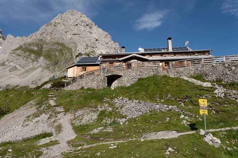 Am Anstiegsweg steigt man zurück zur Hütte und weiter über den Seebensee und den Hohen Gang nach Ehrwald.