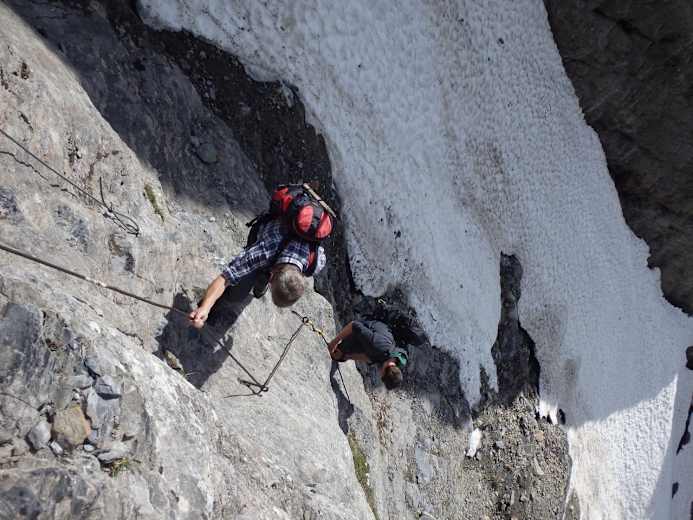 Drahtseilgesicherte Passage im Zu-/Abstieg von der Dossenhütte Foto: Dossenhütte - Guiseppe Pagani