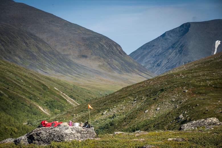 Kurz vor dem Zufluss des Abiskojaure schlägt man am Fusse des Kieron (1.551 m) das Zeltlager auf.