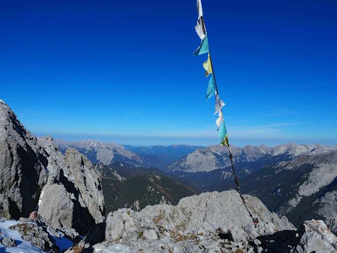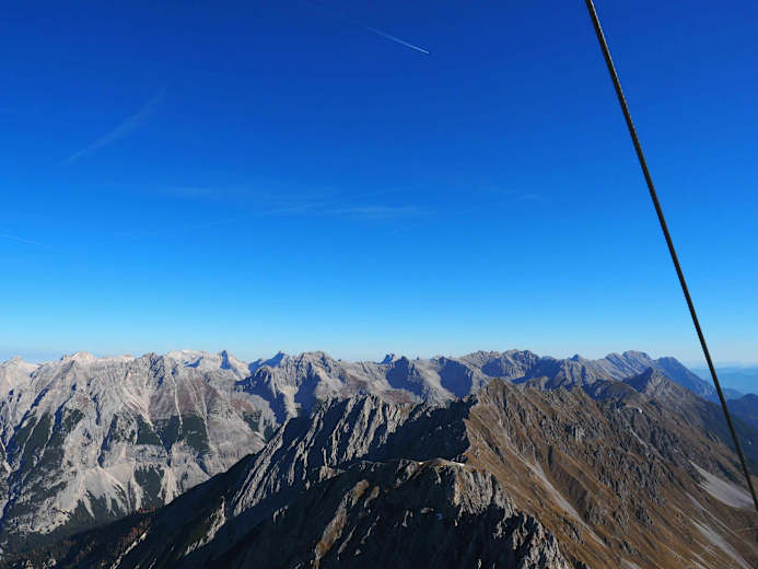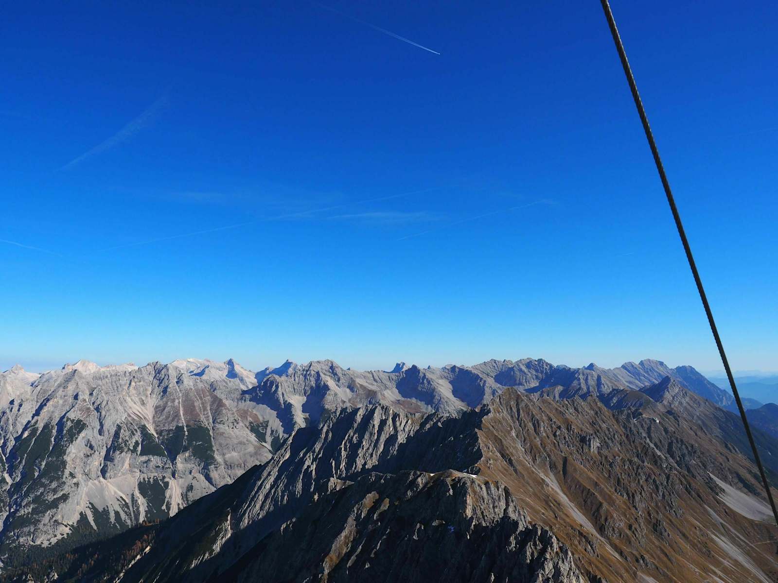 Vom Gipfel der 2.559 m hohen Vorderen Brandjochspitze genießt man ein fantastisches Panorama weit hinein in die Stubaier und Tuxer Alpen, im Westen türmen sich die Ötztaler und Pitztaler auf und hinter einem breitet sich das Karwendel mit seinen Ketten aus.