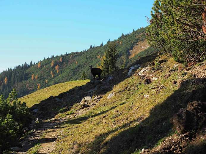 Das kann schon mal passieren: eine Gämse direkt am Weg. Foto: Riki Daurer