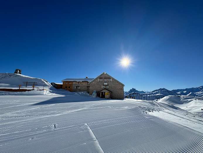 Im Winter ist die Ulmer Hütte besonders für Skifahrer und Snowboarder als Nachtquartier zu empfehlen, da sie direkt am Skihang liegt und man somit der erste auf der Piste sein kann.