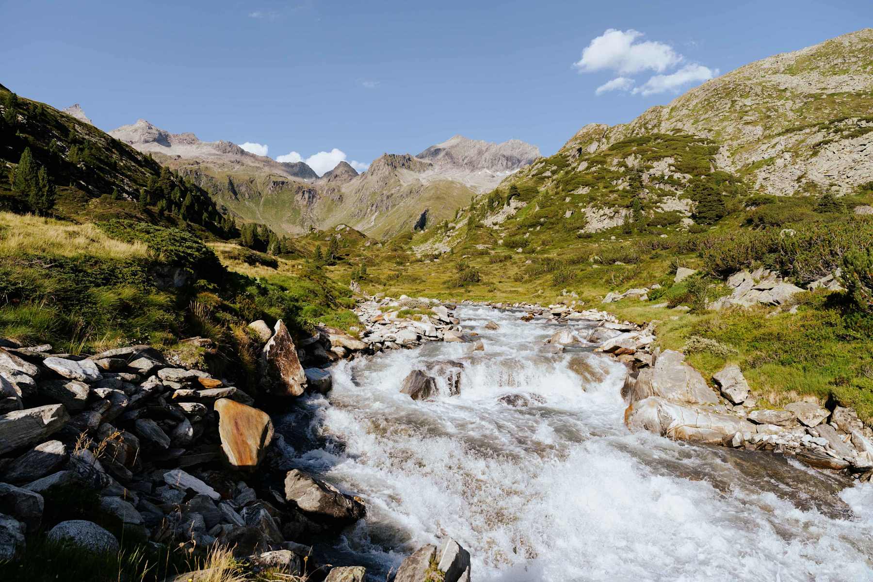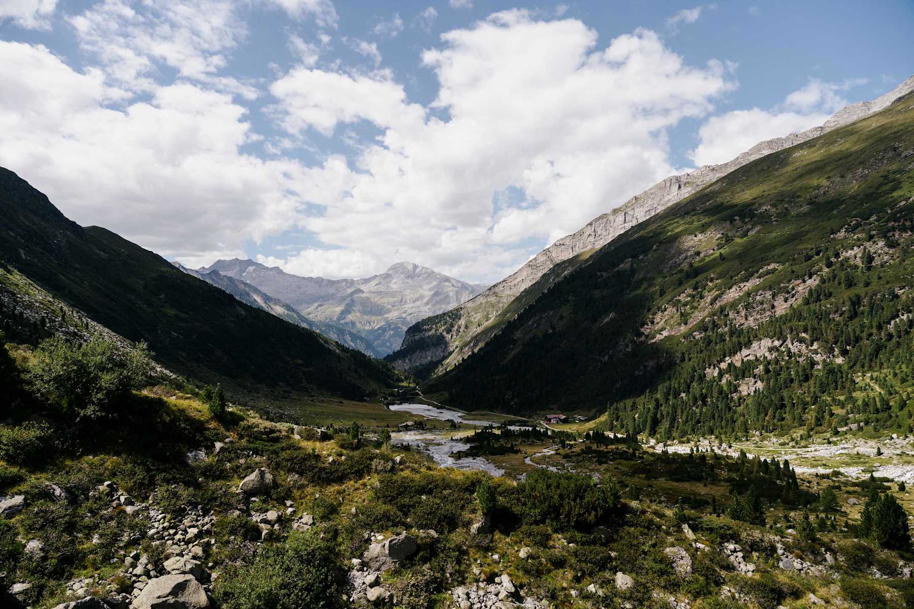 Diese schöne Wanderung führt hinauf zur legendären Berliner Hütte auf 2.044 m. Sie ist eigentlich ein Berghotel, das bereits in den Pionierzeiten des Alpinismus von der Sektion Berlin errichtet wurde. Heute steht das einmalige Haus unter Denkmalschutz.