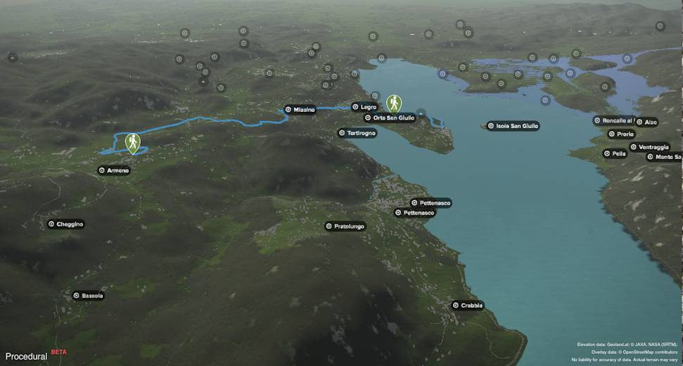 Ausgangspunkt der Wanderung ist die Pfarrkirche von Armeno. Auf dem Cammina Armero Nr. 10 geht es nach Miasino. Dort erfolgt der Abstieg zum Bahnhof von Orta San Giulio. Weiter geht es zur Villa Crespi, zum Sacro Monte und in die Altstadt von Orta San Giulio. Vor dort schlendert man am See entlang zum Parkplatz an der Villa Crespi.