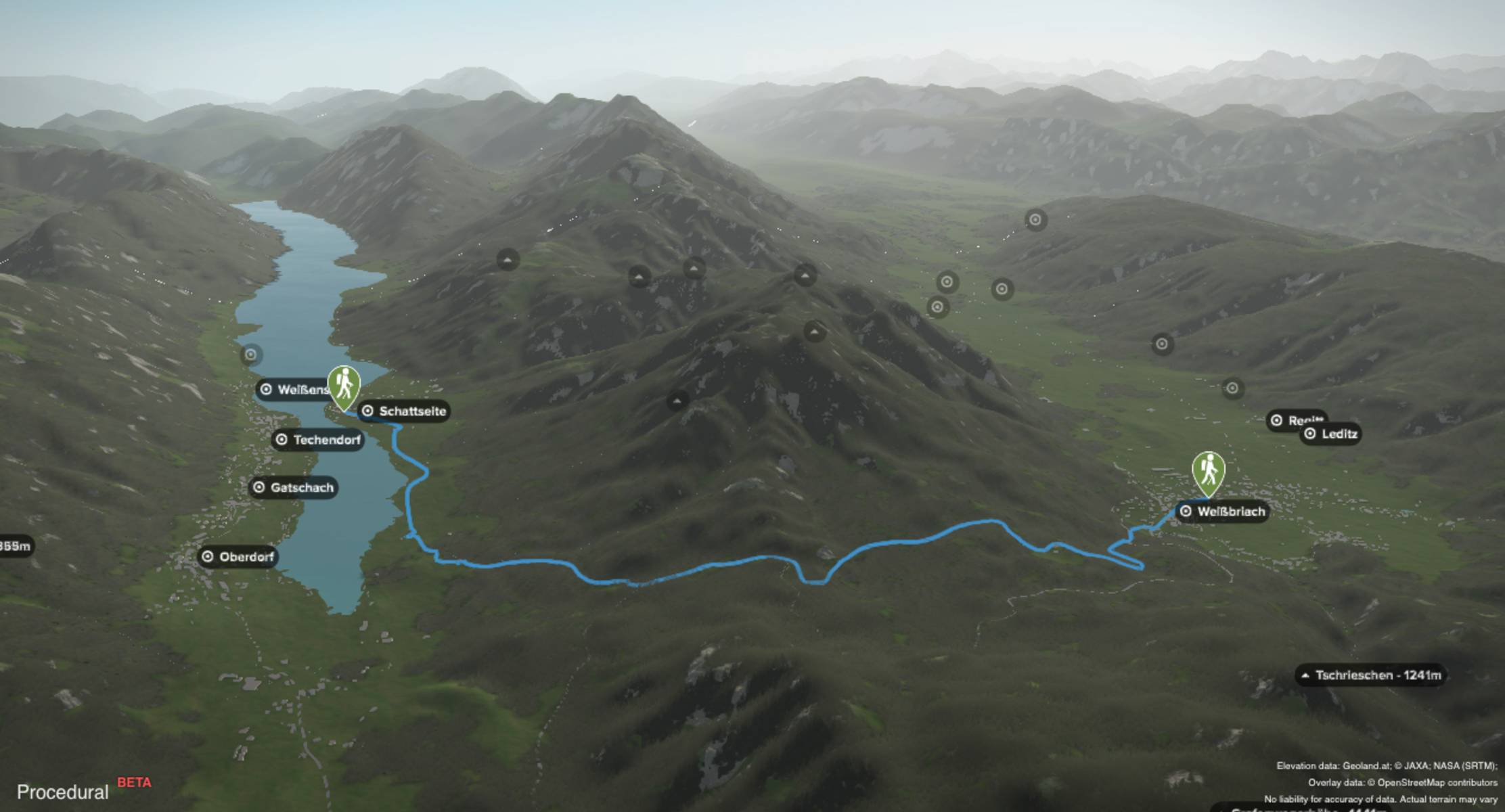 Durch dichten Wald und über aussichtsreiche Wiesen erreicht man nach rund einer halben Stunde das Ufer des kristallklaren Weißensees (930 m). Man folgt dem Weg nach rechts und geht weiter bis Techendorf. Hier überquert man die Brücke und geht bis zur Bushaltestelle am Nordufer. Mit diesem geht es bequem retour zum Ausgangspunkt.