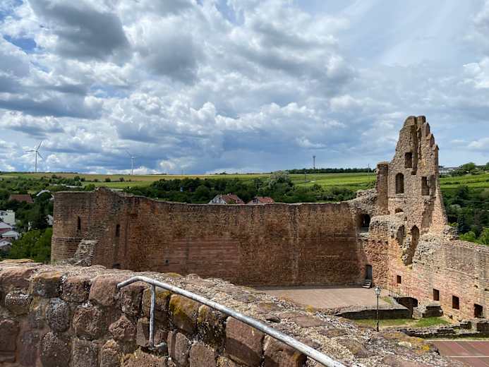 Ein kleines Zeit-Geschenk gefällig? Nimm dir unbedingt den Abstecher zur römischen Steinbruchruine „Kriemhildenstuhl“ mit ihrem spektakulären Ausblick über das Rebenmeer und die Rheinebene – ein Moment, der die Wanderung von Neuleiningen nach Bad Dürkheim besonders macht!