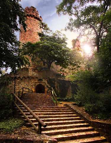 Auf Pfaden bewältigen wir einen weiteren bewaldeten Bergrücken, ehe wir das idyllische Burgtal erreichen. Vorbei am Campingplatz geht es hinauf zur Ruine Wachtenburg, dem „Balkon der Pfalz“. Hier können wir in der Burgschänke einkehren und die herrliche Aussicht auf die Wein‑ und Sektstadt Wachenheim sowie die Rheinebene genießen.