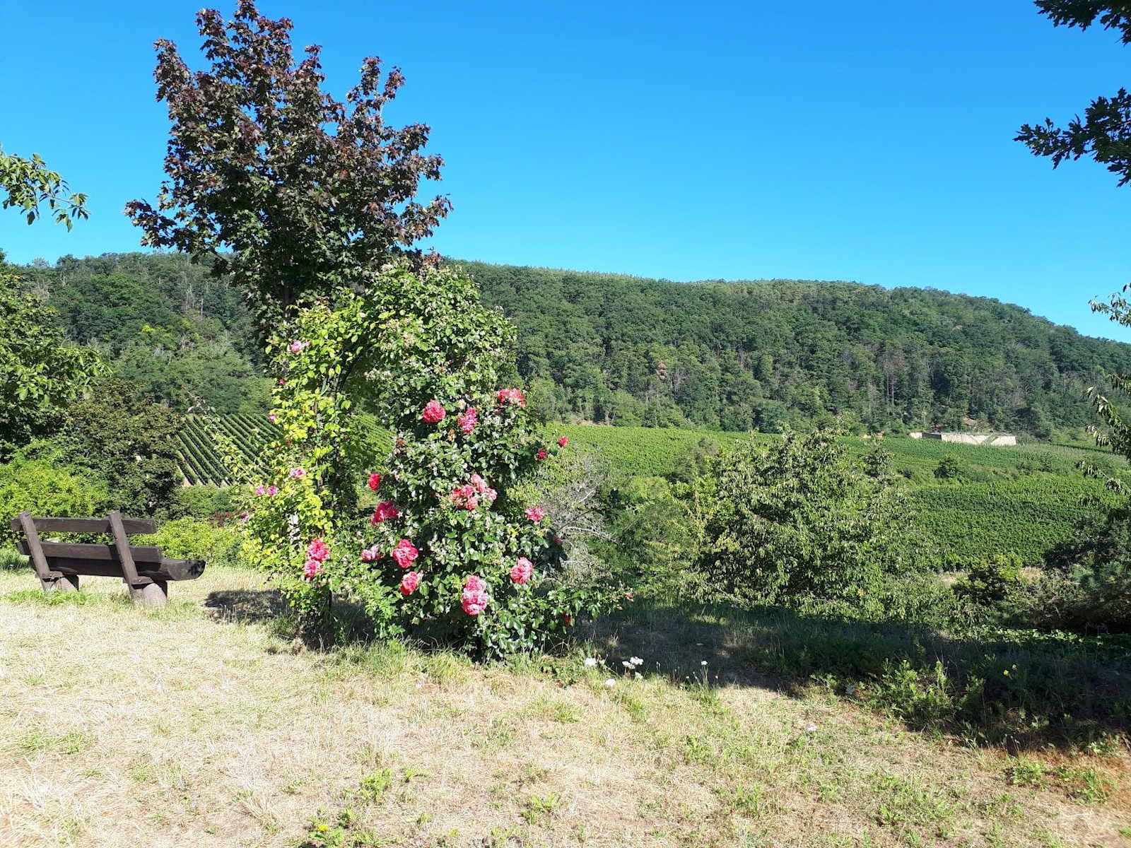 Der schattige Pfad oberhalb der früheren Einzellage „Schlossberg“ führt uns vorbei an der Klausenkapelle in den Weinort Königsbach mit seiner sehenswerten Pfarrkirche St. Johannes.