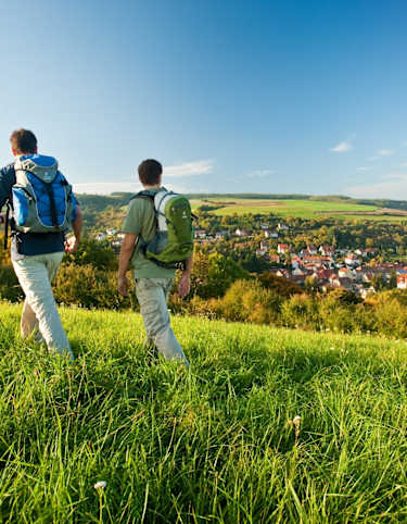 Die fünfte Etappe des Pfälzer Weinsteigs ist eine mittelschwere Wanderung im Pfälzerwald in Rheinland-Pfalz. Vom Marktplatz in Neustadt an der Weinstraße führt der Weg über den Zigeunerfelsen und den Nollenkopf zum Naturdenkmal Hambacher Bergstein und weiter zum geschichtsträchtigen Hambacher Schloss. Über das Hohe-Loog-Haus geht es hinauf zur Kalmit, dem höchsten Gipfel des Pfälzerwaldes, mit fantastischem Ausblick und der Ludwigshafener Hütte. Vorbei am imposanten Felsenmeer wandern wir schließlich hinab nach St. Martin mit seinem idyllischen, denkmalgeschützten Ortskern.