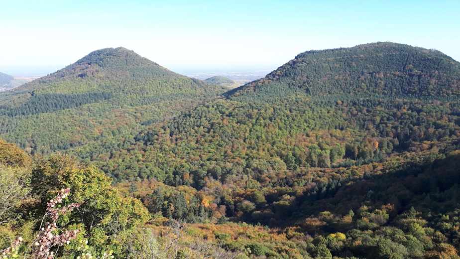 Auf einem schmalen Pfad geht es anschließend hinab ins Kaiserbachtal und vorbei am Pfalzklinikum zur Ruine Landeck, ebenfalls mit einer Burgschänke und herrlichem Blick auf die Rheinebene. Nun trennt uns nur noch ein Abstieg vom Tagesziel: dem lieblichen Weinort Klingenmünster.