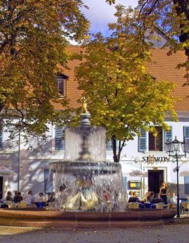 Anschließend steigen wir vorbei am Slevogthof, der langjährigen Wohn- und Wirkungsstätte des berühmten Impressionisten Max Slevogt, hinab in den kleinen Ort Leinsweiler, wo wir uns in einer Kneippanlage am Wegesrand erfrischen können.