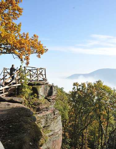 Nicht weniger als acht aussichtsreiche Ruinen und Burgen liegen auf oder in unmittelbarer Nähe unserer Strecke, darunter die Reichsburg Trifels sowie die Ruine Madenburg. Außerdem entdecken wir imposante Sandsteinmassive.