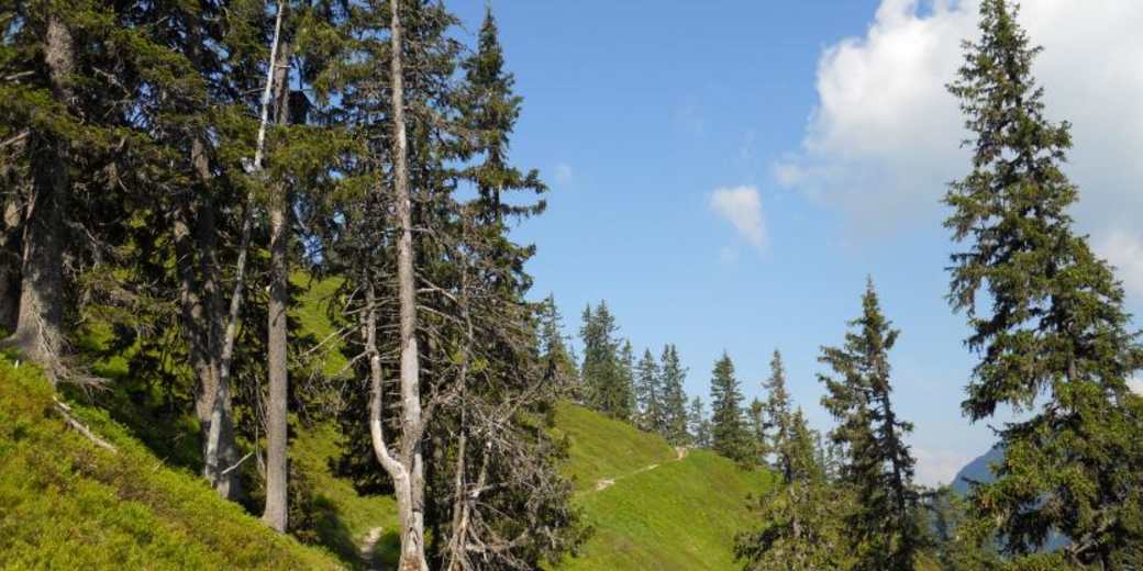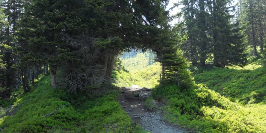 Von der Bergstation der Kohlmaisbahn geht es anfangs leicht bergab zur Bergstation des Panorama 6er und von hier immer der Beschilderung folgend in den Wald. Auf einem schmalen Pfad erreicht man die Grünen Böden Hütte.